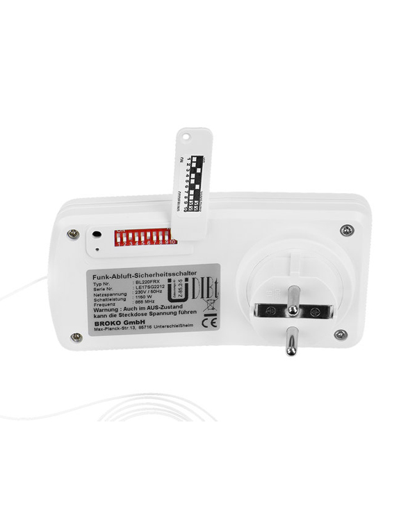 Das BL220FTX/BL220F-System ist die sichere Lösung für Abluftanlagen mit Schukostecker, besonders bei Inselhauben mit Metallverkleidung. Der externe Antennenempfänger gewährleistet auch unter Abschirmung eine stabile Funkverbindung. Der Magnetkontaktsender überwacht die Fensterposition und gibt die Abluftanlage nur bei geöffnetem oder gekipptem Fenster frei. Wird das Fenster geschlossen, stoppt das System nach ca. 30 Sekunden automatisch.