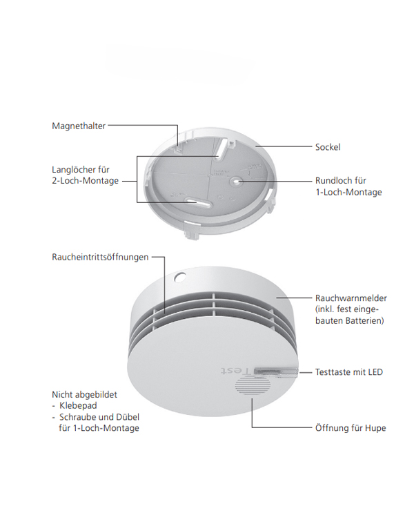 | Batteriekapazität | 1 × 1,8 Ah Rauchwarnmelder 1 × 1,8 Ah für Funkmodul (optional) |